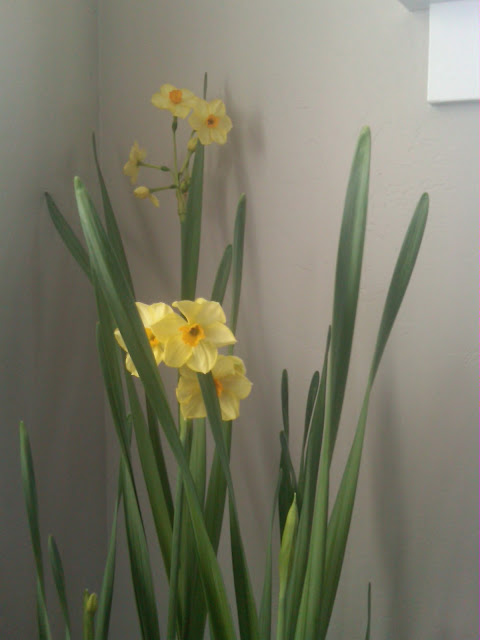The daffodils finally were able to be on display right around Christmas. They've given our living room a nice spot of color, greenery and fragrance from their little corner of the living room.